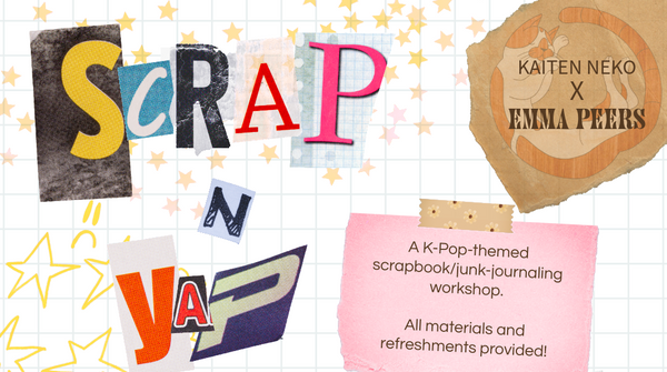 We are delighted to announce a collaboration with local artist Emma Peers for a K-pop themed Scrap 'N' Yap workshop! Join us for a creative, hands-on workshop exploring the art of junk journaling and scrapbooking! Whether you’re a complete beginner or an experienced maker, this relaxed and friendly session is the perfect space to experiment, play, and create your own unique journal pages.
